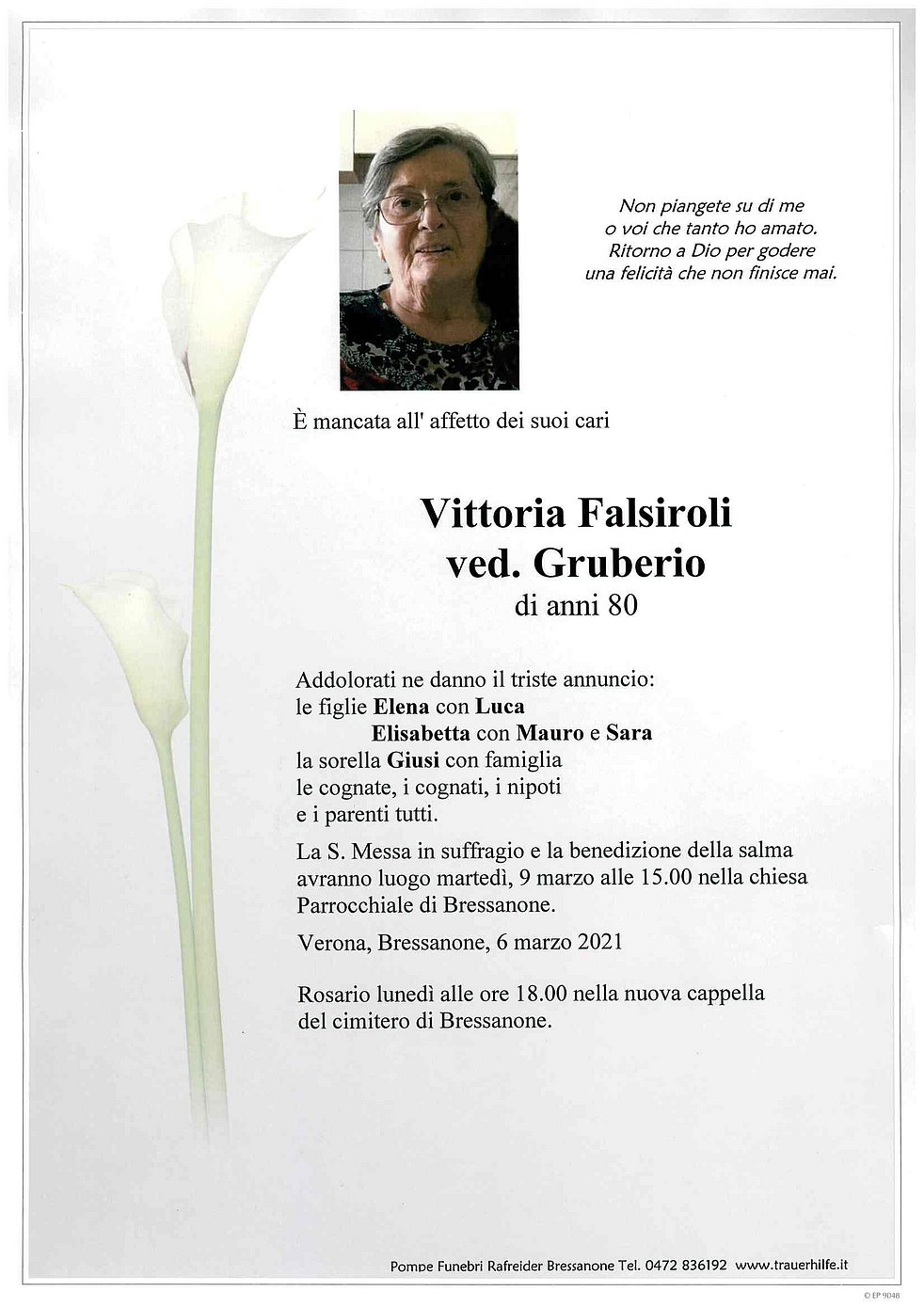 La S. Messa in suffragio e la benedizione della salma avranno luogo martedì, 9 marzo alle ore 15.00 nella chiesa Parrocchiale di Bressanone.
