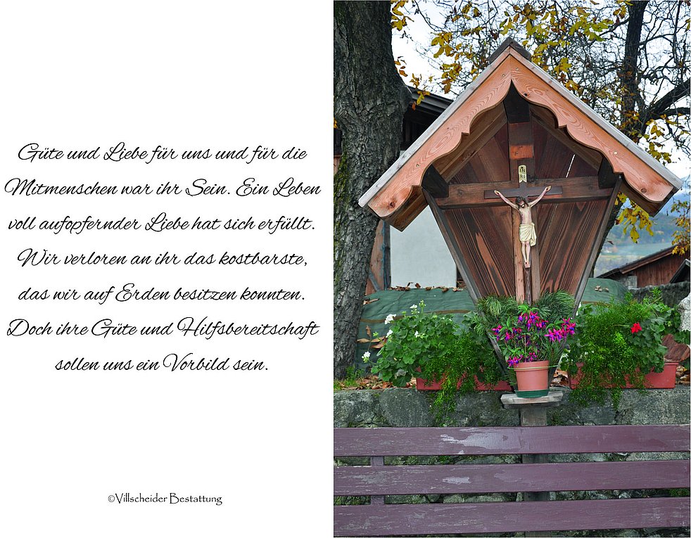 um 13.45 Uhr vom Trauerhaus ausgehend, zum Herrnegger-Kreuz, wo um 14 Uhr die Einsegnung stattfindet. Anschließend erfolgt der Trauergottesdienst und die Beisetzung im Ortsfriedhof.