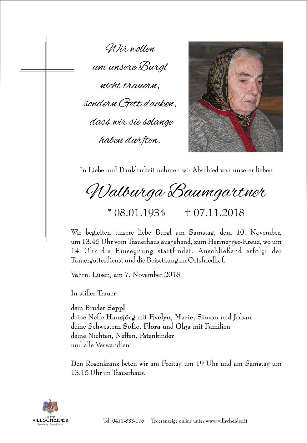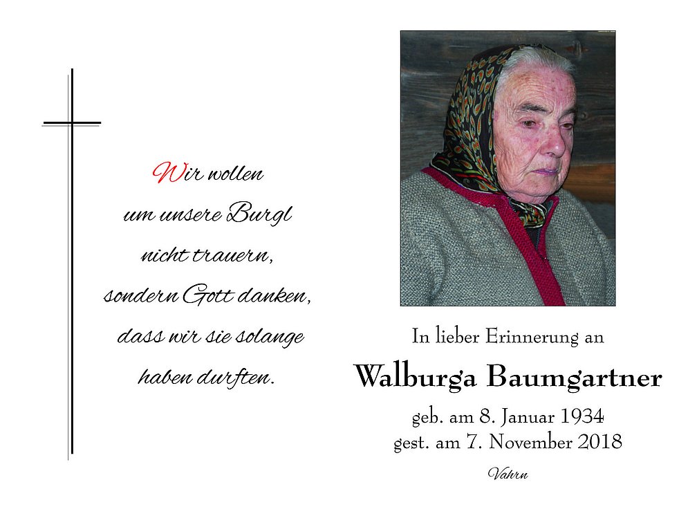Wir begleiten unsere liebe Burgl am Samstag, dem 10. November,