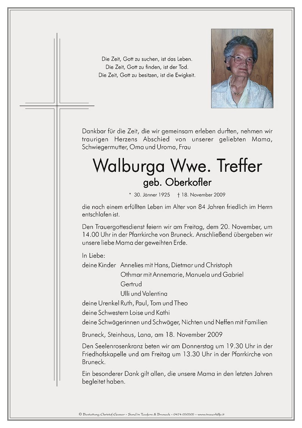 Den Trauergottesdienst feiern wir am Freitag, dem 20. November, um 14.00 Uhr in der Pfarrkirche von Bruneck. Anschließend übergeben wir unsere liebe Mama der geweihten Erde.