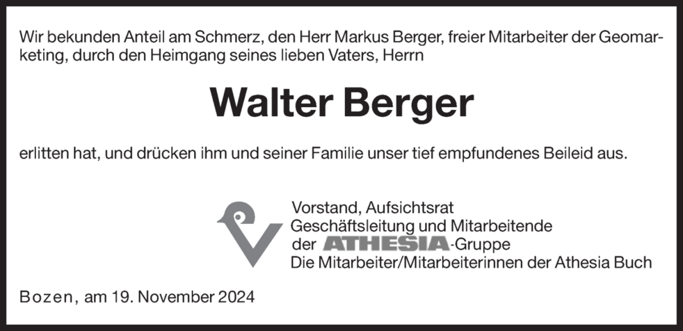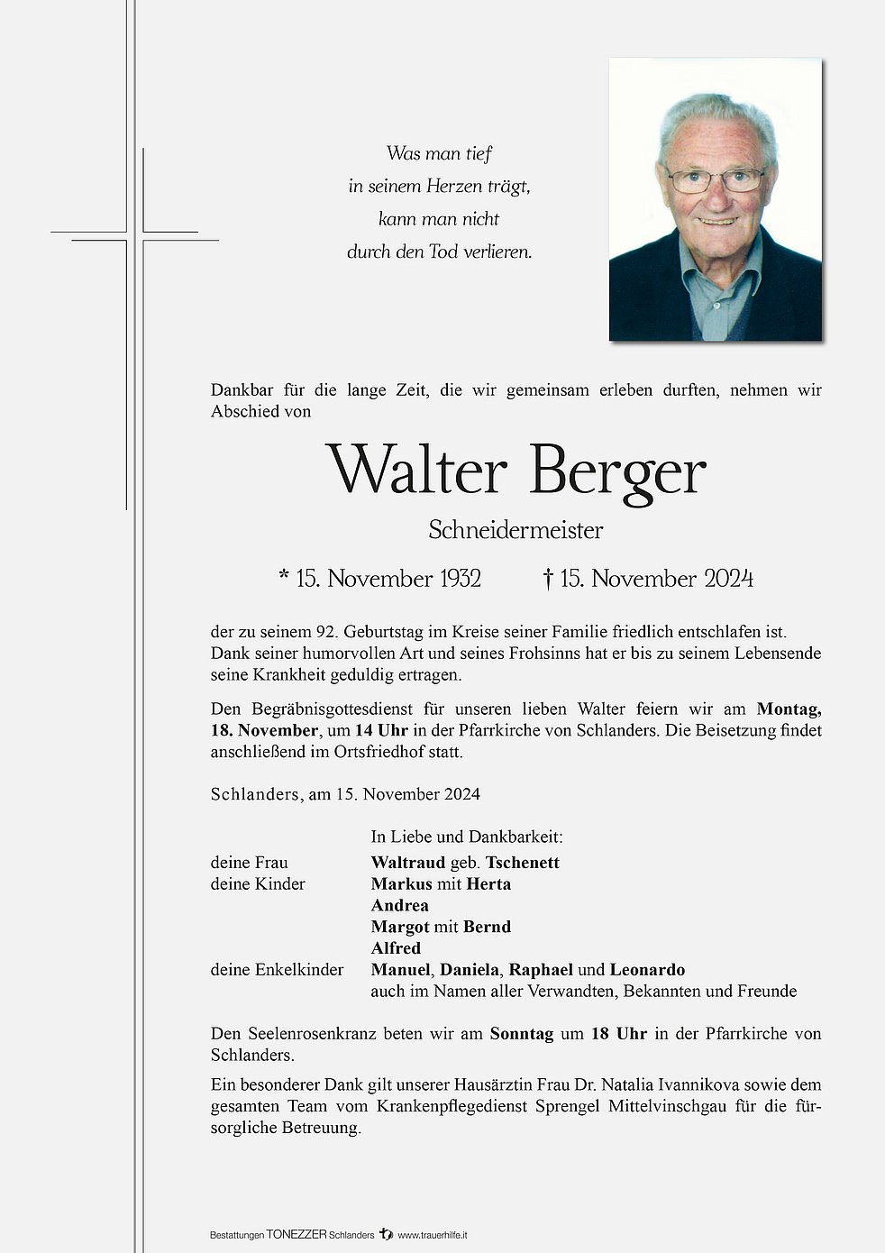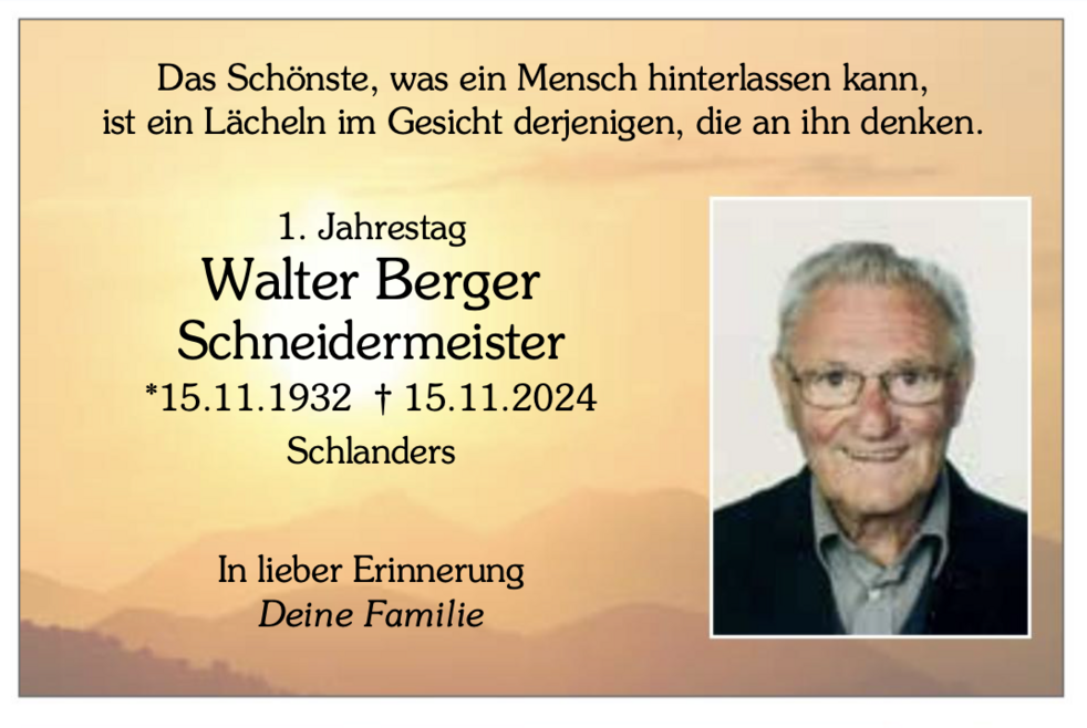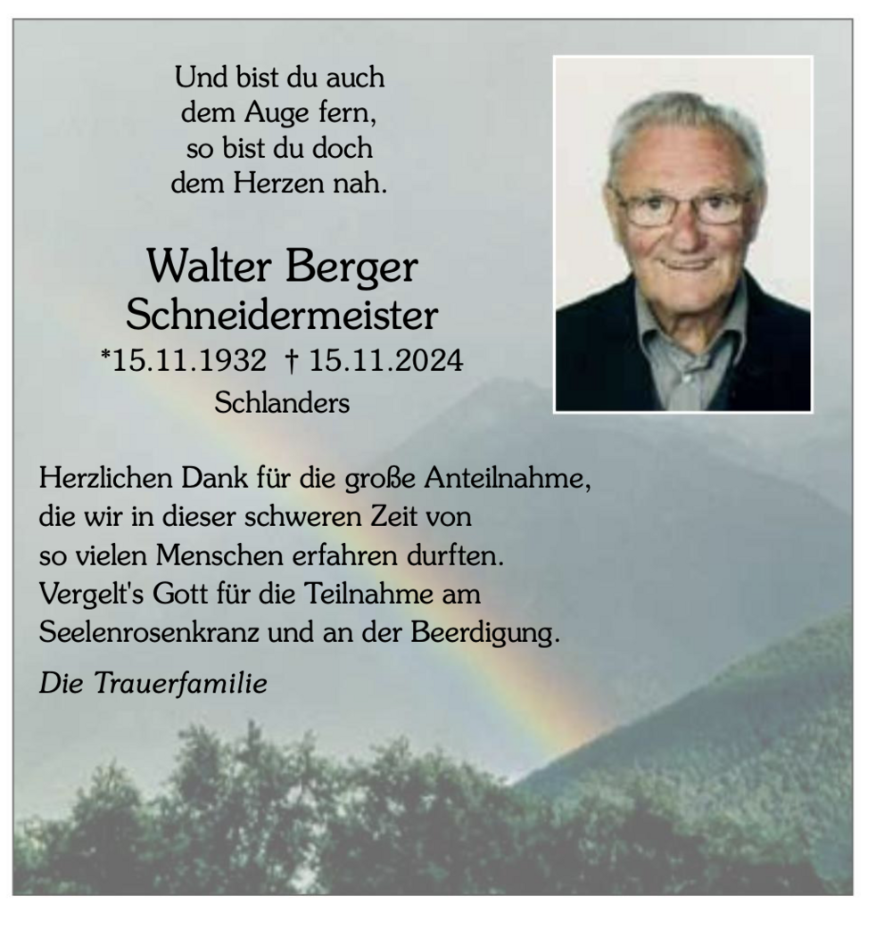 Walter Berger ist am 15.11.1932 in Schlanders geboren.