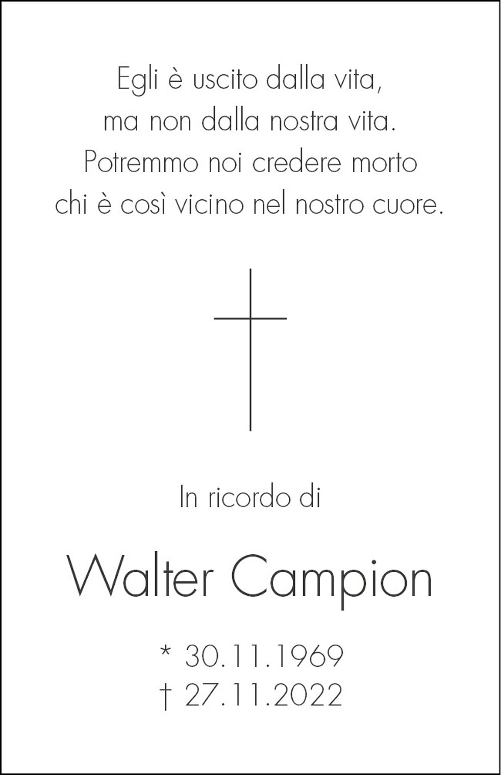 Daremo l'ultimo saluto al nostro caro defunto giovedì, 1 dicembre alle ore 15.05 nella sala del commiato al crematorio del cimitero di Oltrisarco.