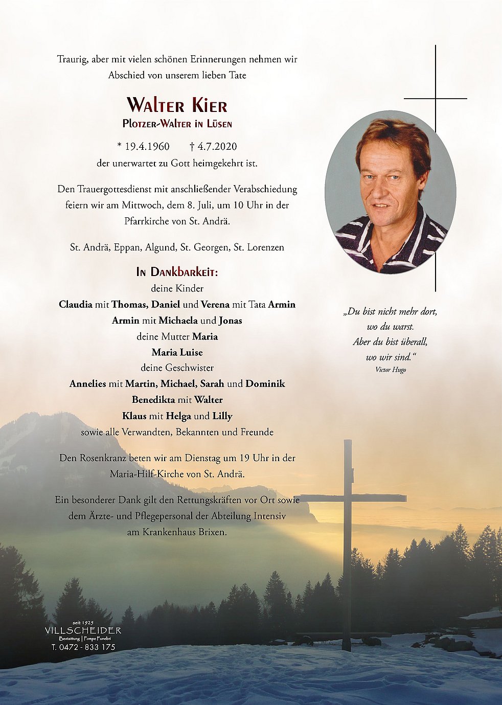 In diesen schweren Stunden des Abschieds soll unser Gebet und unsere Gedanken bei euch sein.