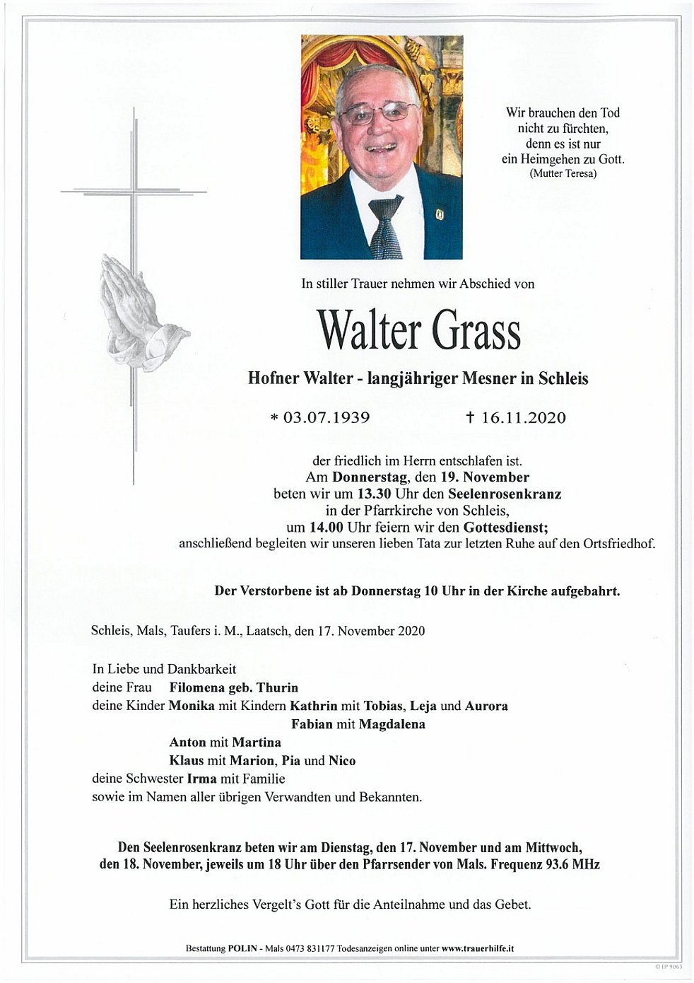 Ein herzliches Vergelt’s Gott für die Anteilnahme und das Gebet.