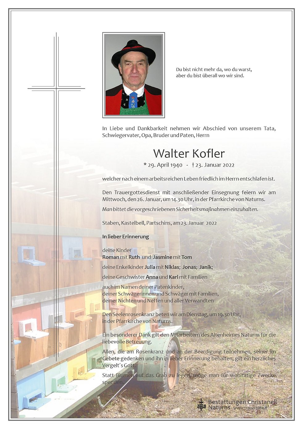 Den Trauergottesdienst mit anschließender Einsegnung feiern wir am Mittwoch, den 26. Januar, um 14.30 Uhr, in der Pfarrkirche von Naturns.
