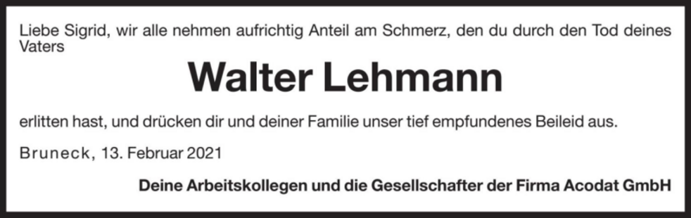 Unser lieber Walter ist von Montagvormittag bis Dienstagmittag zur persönlichen Verabschiedung in der Friedhofskapelle von Bruneck aufgebahrt.