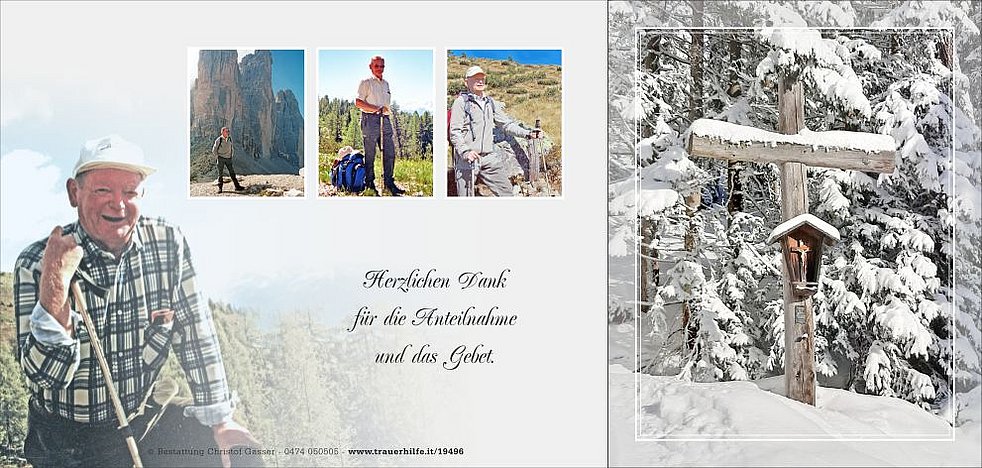 Wir bedanken uns beim Hausarzt Herrn Dr. Andreas Felder sowie bei Herrn Dr. Christoph Leitner und seinem Team der onkologischen Tagesklinik am Krankenhaus Bruneck für die jahrelange Betreuung und Begleitung.