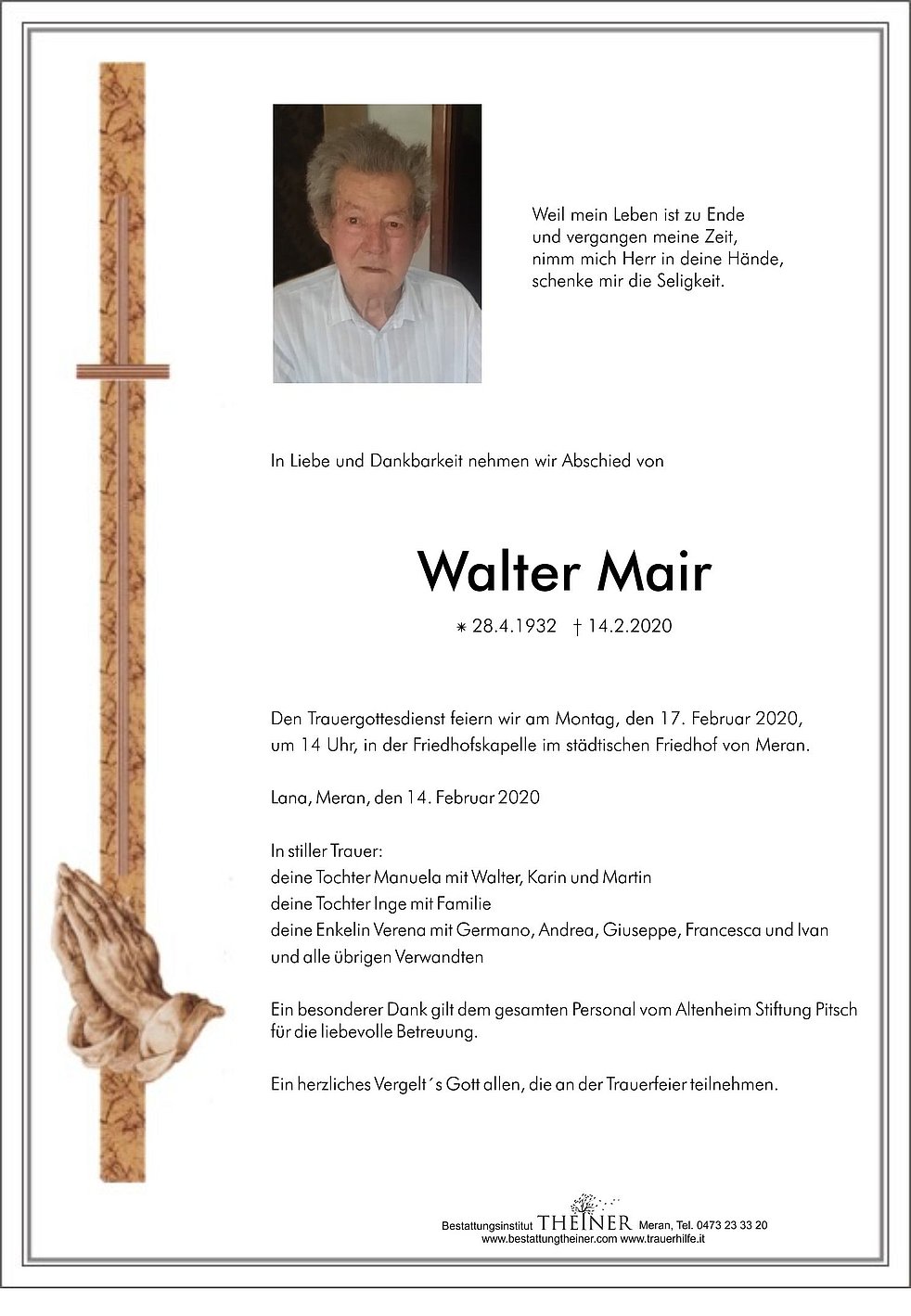 um 14 Uhr, in der Friedhofskapelle im städtischen Friedhof von Meran.