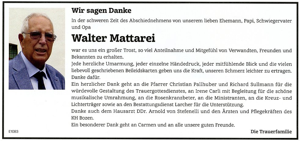 Allen, die an den Rosenkränzen und an der Beerdigung teilnehmen, im Voraus ein herzliches Vergelt´s Gott.
