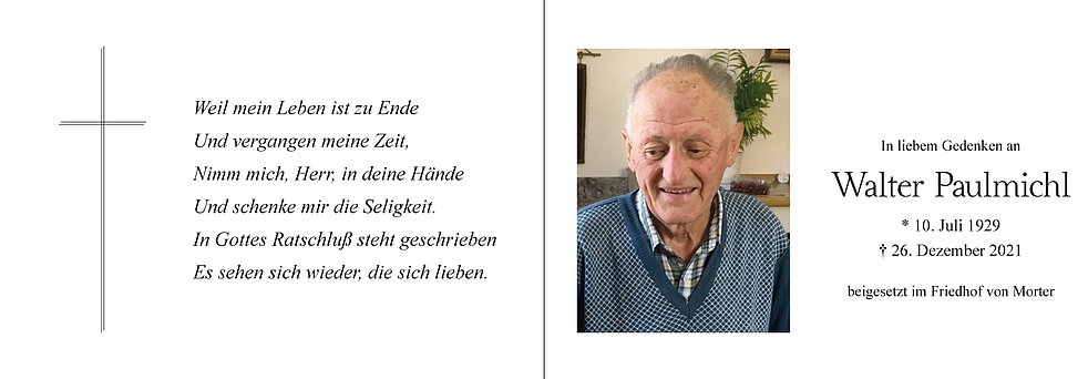 Heimgeholt in seinen ewigen Frieden hat Gott, der Herr, meinem lieben Mann, unseren Tata, Schwiegervater, Opa, Uropa, Bruder, Schwager, Onkel und Paten, Herrn