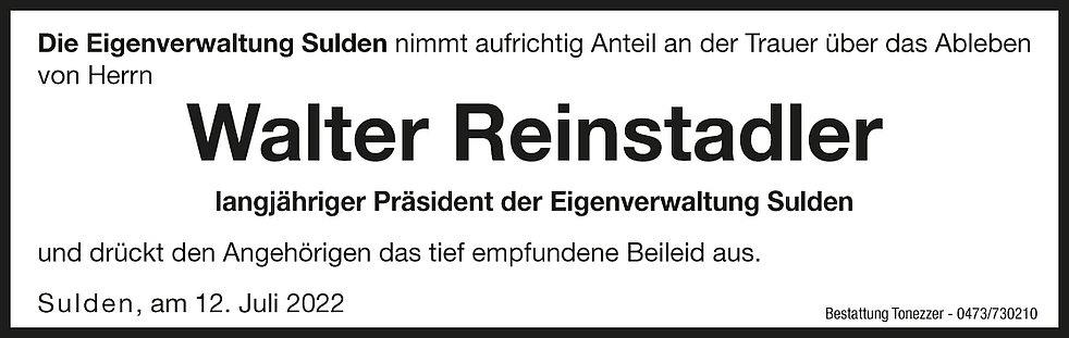 Die Beisetzung erfolgt im Ortsfriedhof von Sulden.