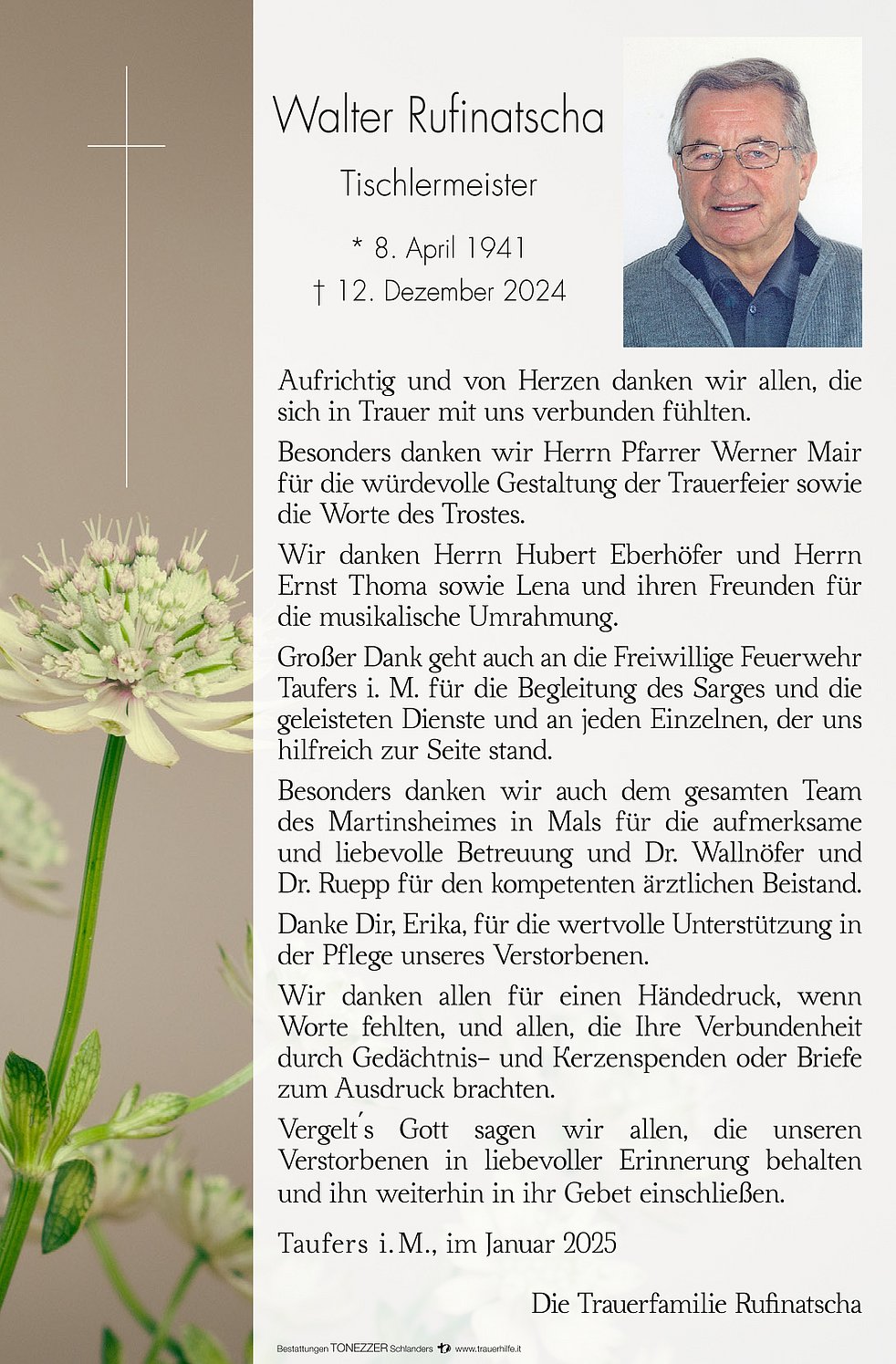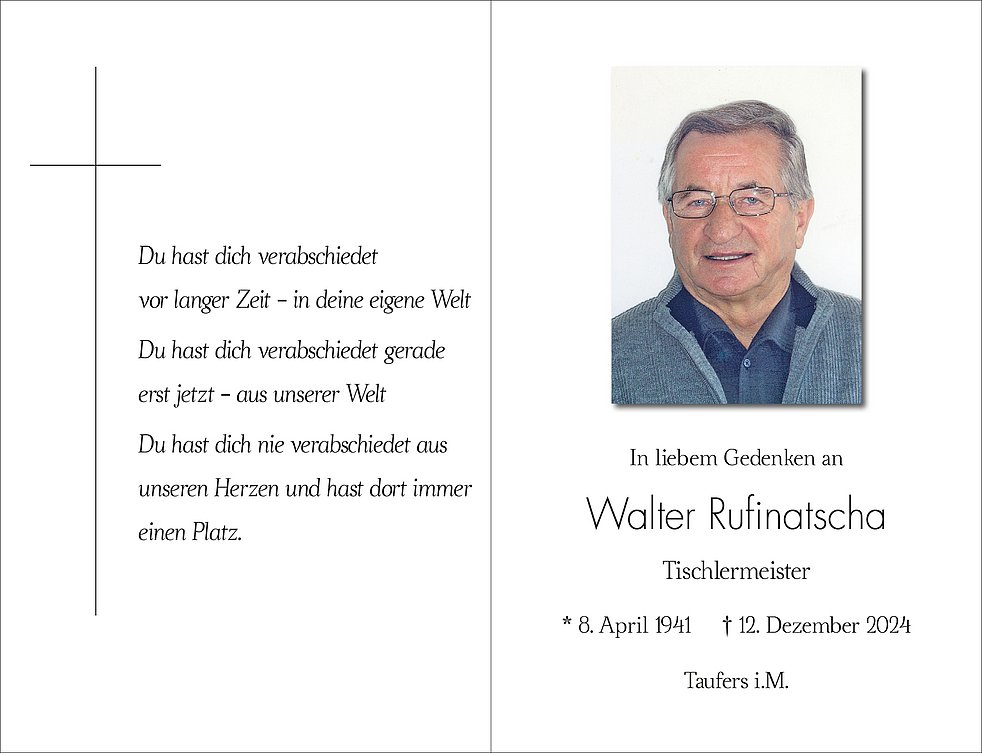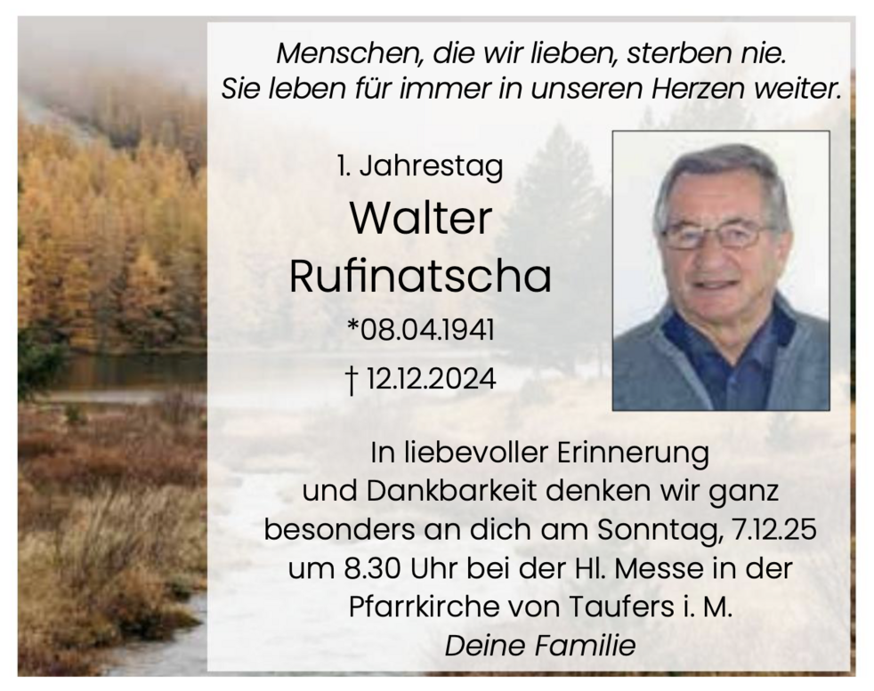 Jahresgottesdienst: 07.12. - 08:30 Uhr St. Johann-Kirche von Taufers i.M.