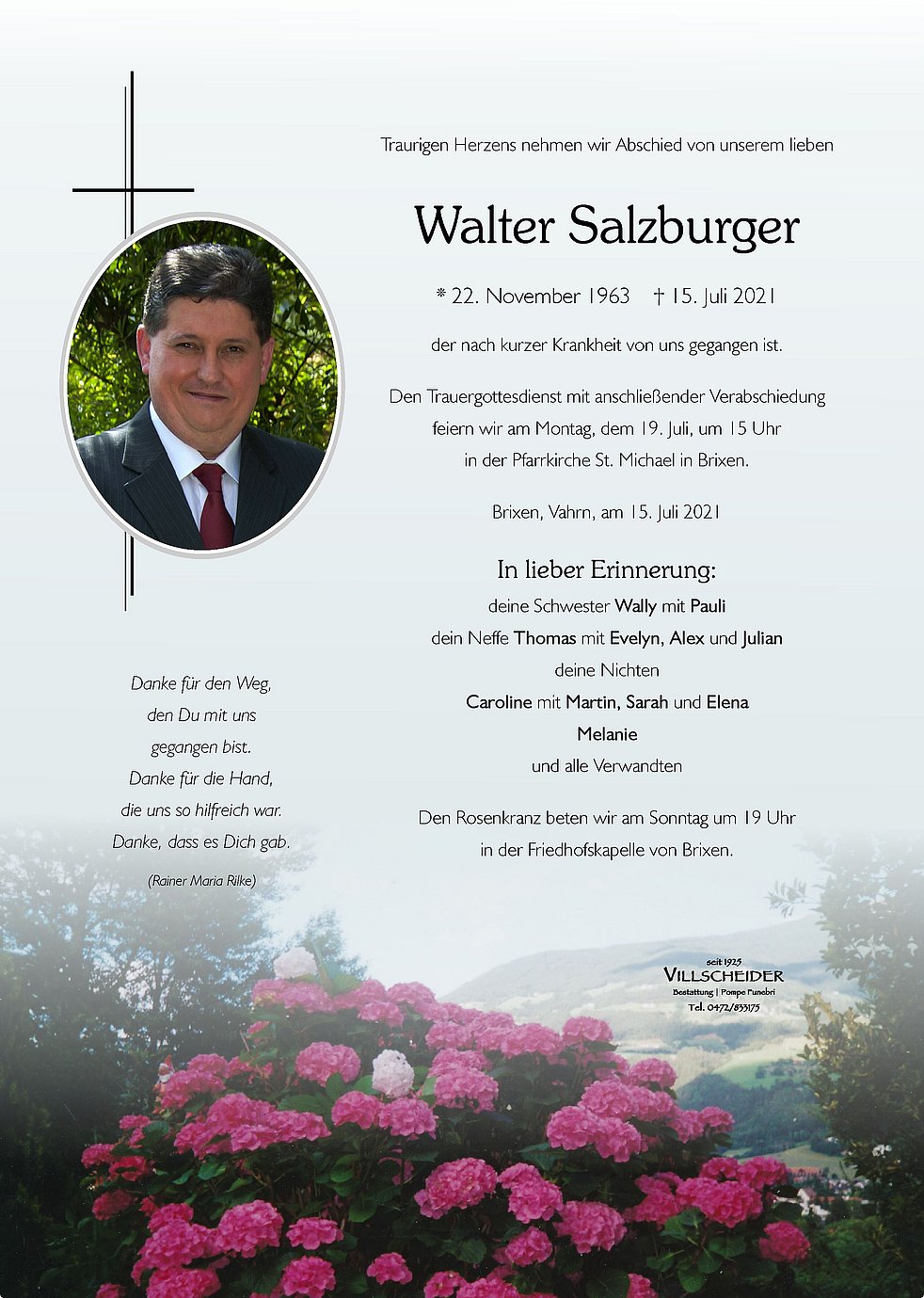 Carissime Famiglie Salzburger, ci ha molto rattristato apprendere la notizia, Vi siano molto vicini in questo inconsolabile momento e Vi porgiamo le nostre più sentite e sincere condoglianze.