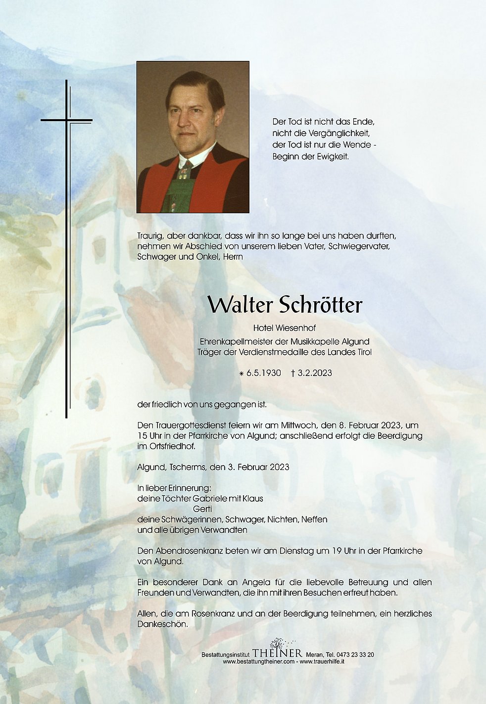 Den Trauergottesdienst feiern wir am Mittwoch, den 8. Februar 2023, um 15 Uhr in der Pfarrkirche von Algund; anschließend erfolgt die Beerdigung im Ortsfriedhof.