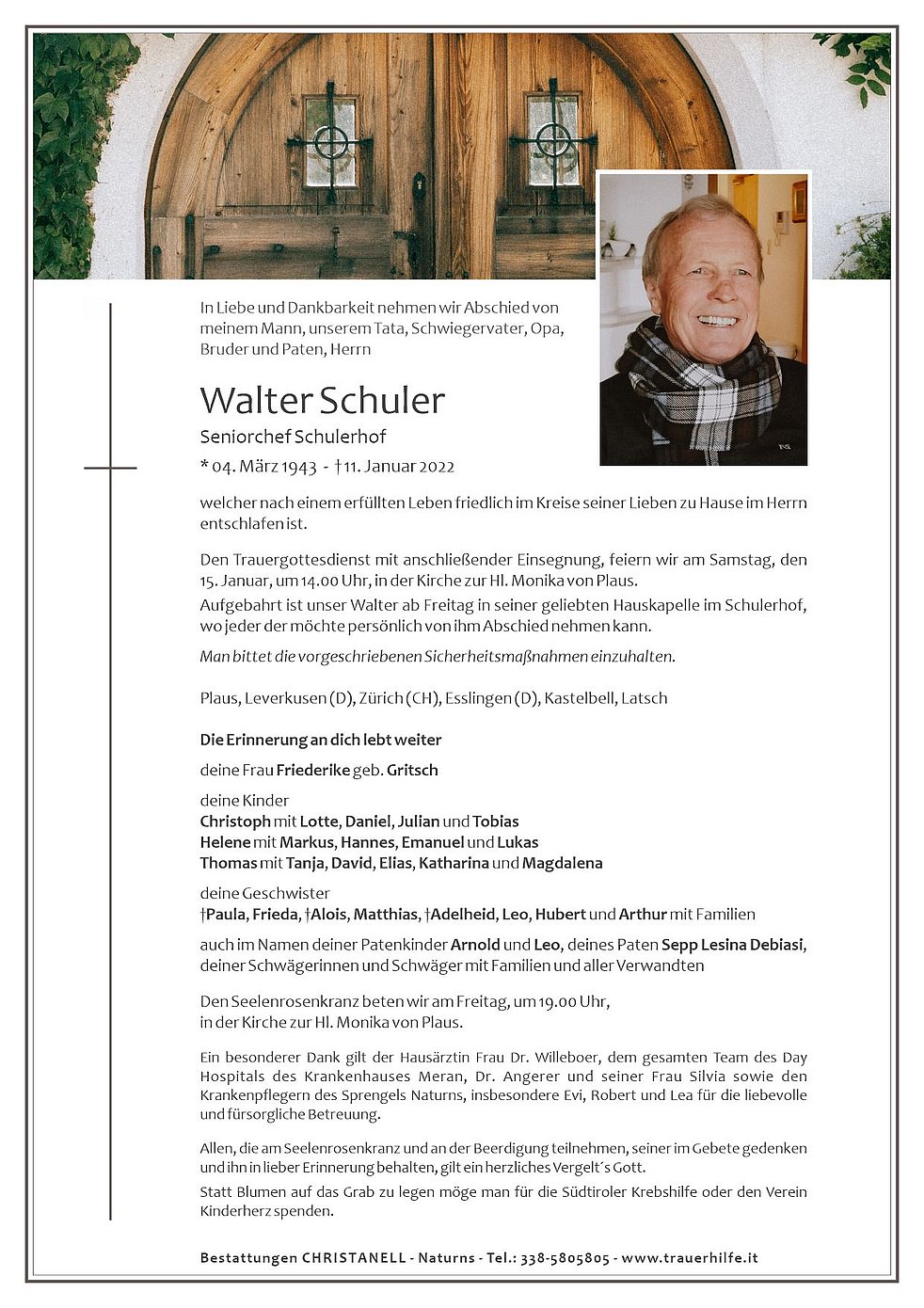Aufgebahrt ist unser Walter ab Freitag in seiner geliebten Hauskapelle im Schulerhof, wo jeder der möchte persönlich von ihm Abschied nehmen kann.