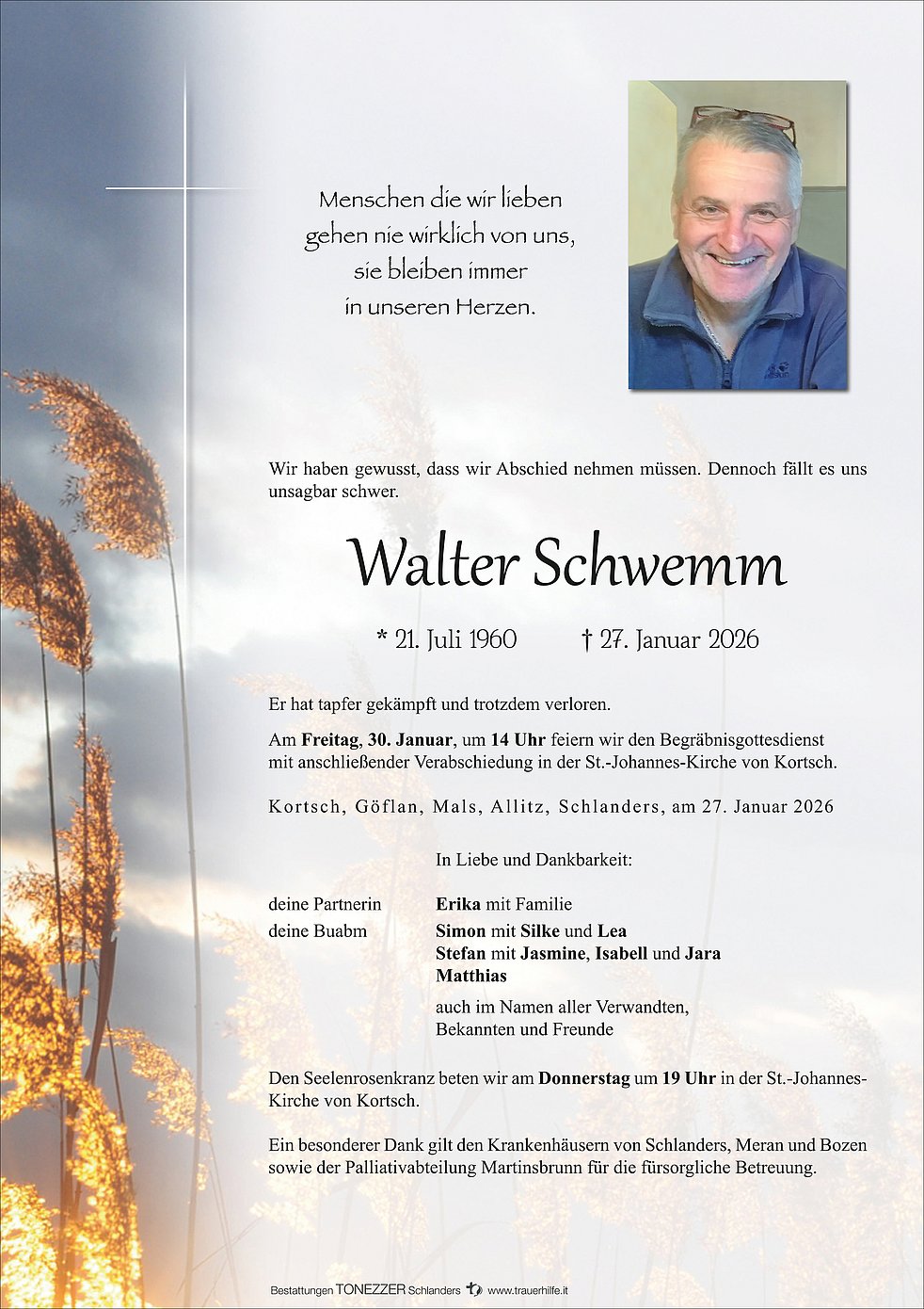Ein besonderer Dank gilt den Krankenhäusern von Schlanders, Meran und Bozen sowie der Palliativabteilung Martinsbrunn für die fürsorgliche Betreuung.