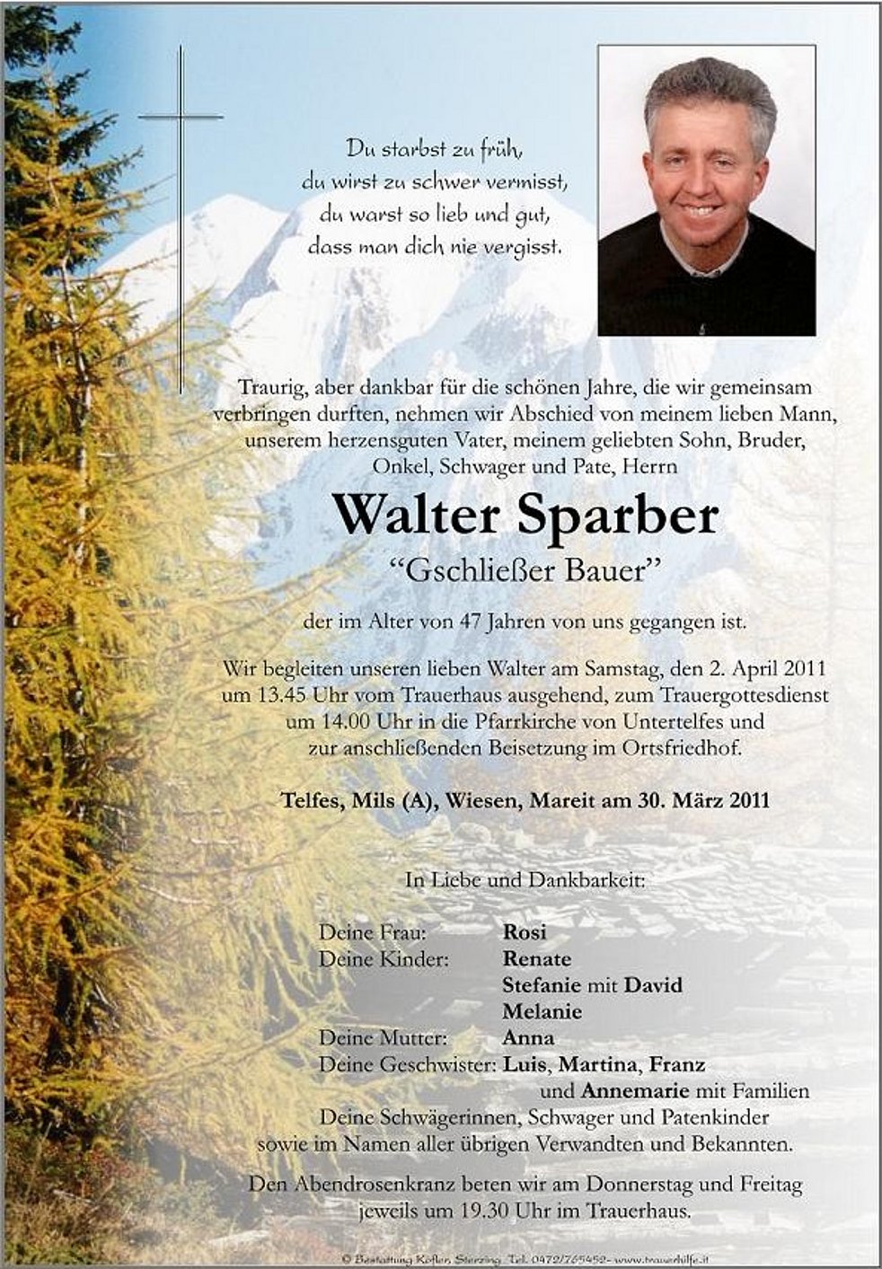 in die Pfarrkirche von Untertelfes und zur anschließenden Beisetzung im Ortsfriedhof.