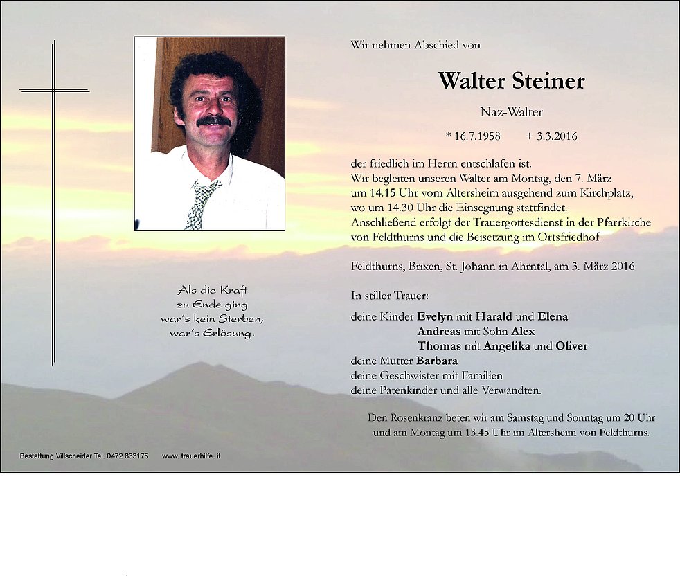 von Feldthurns und die Beisetzung im Ortsfriedhof.
