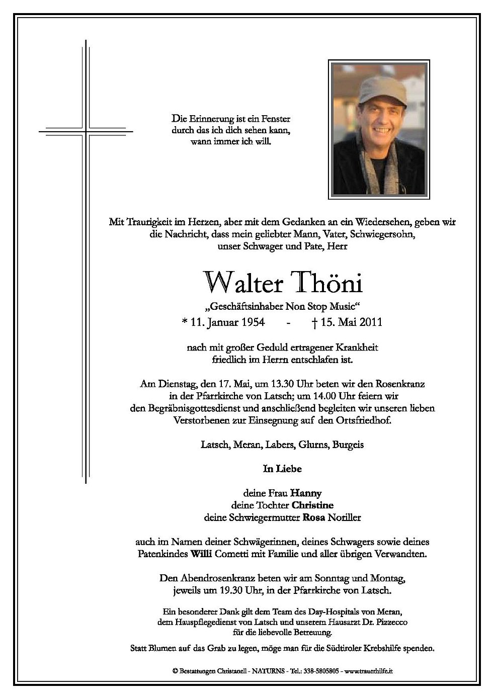 Am Dienstag, den 17. Mai, um 13.30 Uhr beten wir den Rosenkranz in der Pfarrkirche von Latsch; um 14.00 Uhr feiern wir den Begräbnisgottesdienst und anschließend begleiten wir unseren lieben Verstorbenen zur Einsegnung auf den Ortsfriedhof.
