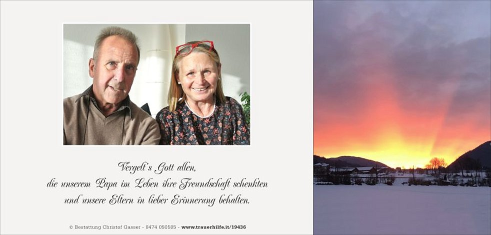 Dankbar für die schöne Zeit, die wir miteinander erleben durften, nehmen wir traurigen Herzens Abschied von unserem lieben Papa, Schwiegervater und Opa, Herrn