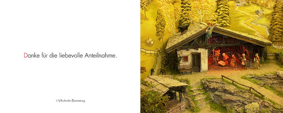 Lieber Walter, du worsch a besonderer Mensch, insere Weihnachtskrippe wert ins olm a die errinnern, mein beileid dir lotti und kinder, edeltraud mit fam.