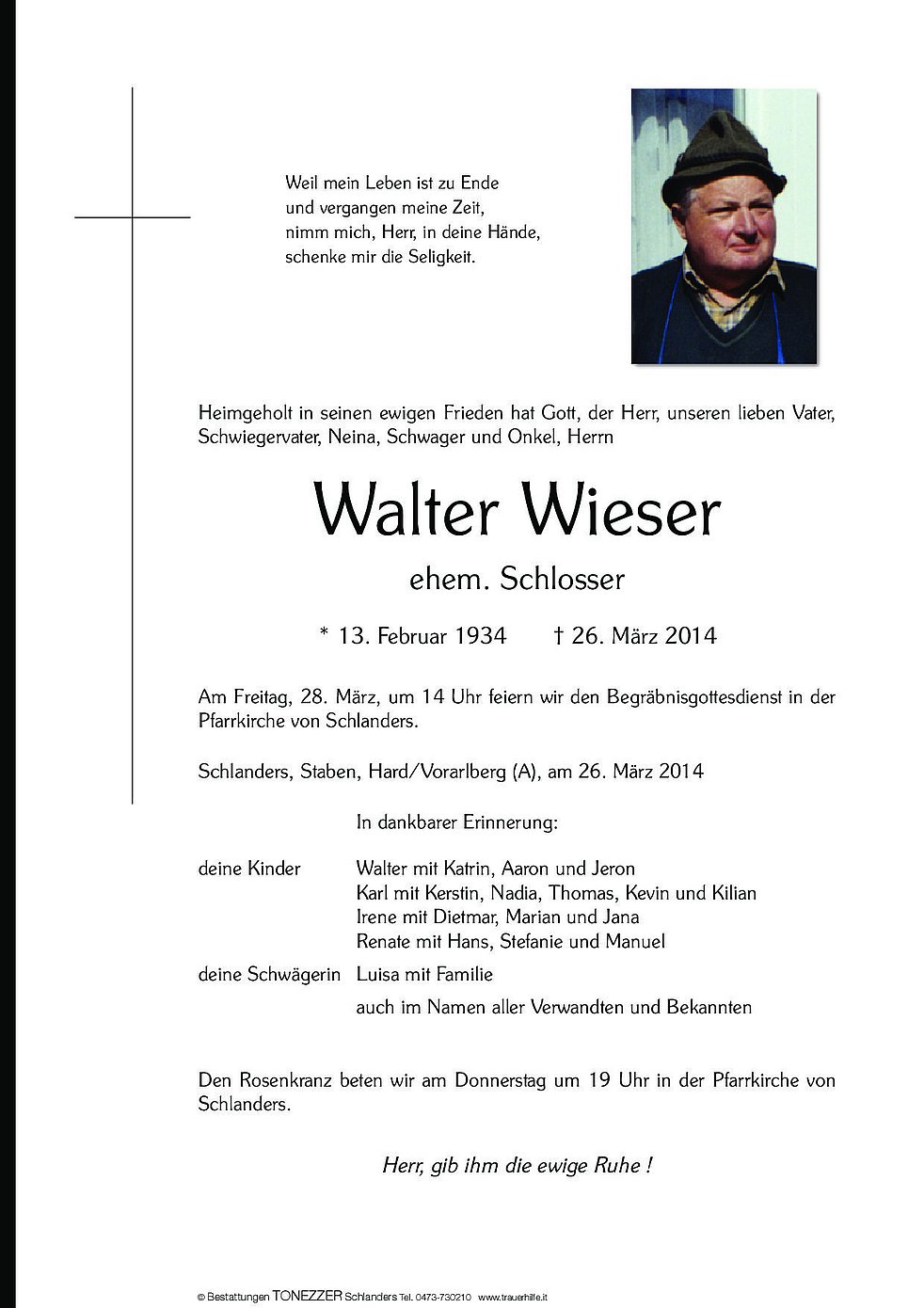 Am Freitag, 28. März, um 14 Uhr feiern wir den Begräbnisgottesdienst in der Pfarrkirche von Schlanders.