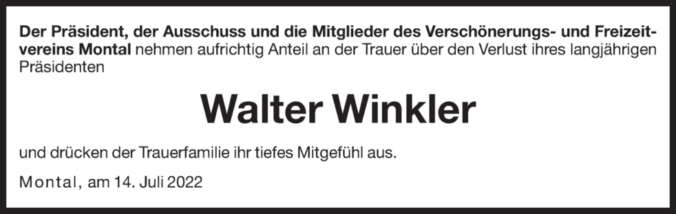 Wir verabschieden unseren lieben Walter beim Trauergottesdienst am Montag, 18. Juli, um 13 Uhr in der Pfarrkirche von Montal.