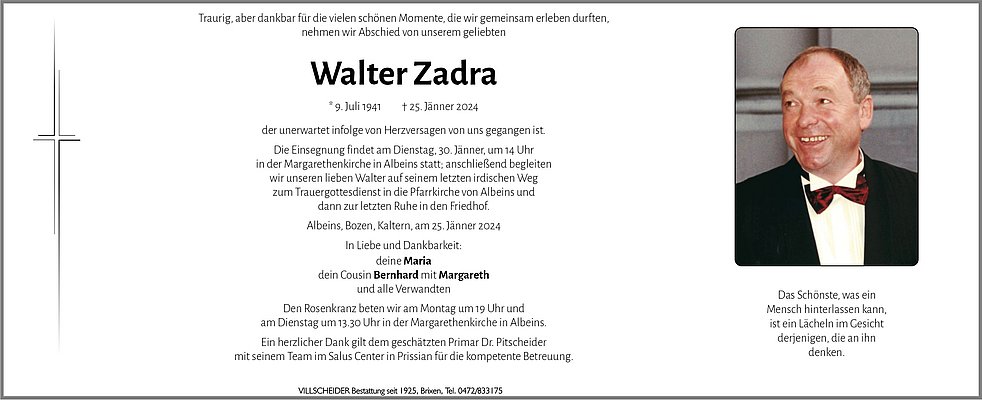Liebe Maria unser aufrichtiges Beileid. Die herzliche und lustige Art von Walter wird uns allen fehlen. Mit stillem Gruß