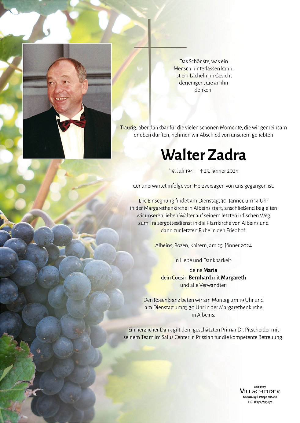 Der gute Walter ist von uns gegangen. Sein Körper wird uns verlassen aber sein Geist wir in unserer Erinnerung immer präsent sein. Und über den Wolken die himmlische "Böhmische" dirigieren. Die Vinobarden stehen Dir nahe und nehmen Anteil an Deinem Trennungsschmerz.