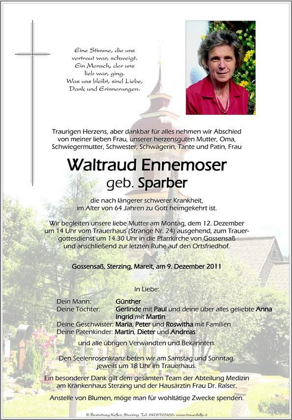 in die Pfarrkirche von Gossensaß und anschließend zur letzten Ruhe auf den Ortsfriedhof.