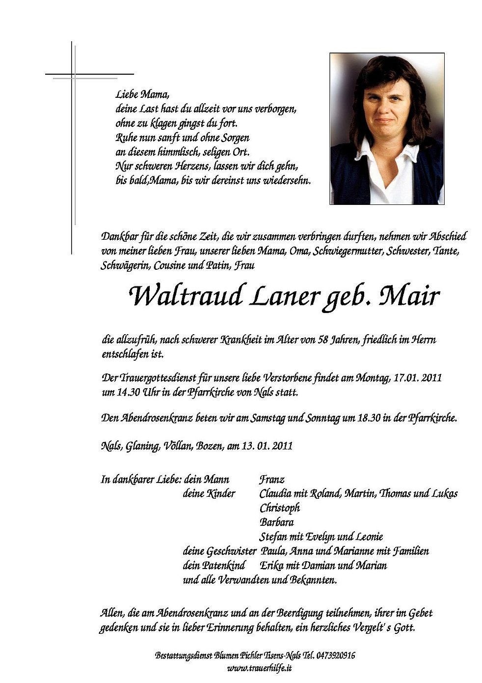 Der Trauergottesdienst für unsere liebe Verstorbene findet am Montag, 17.01. 2011