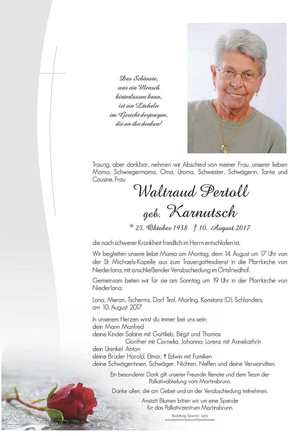 Erinnerungen sind wie kleine Sterne, die tröstend in das Dunkel eurer Trauer leuchten. Zum Tode eurer lieben Mutter u. Frau möchten wir unser aufrichtiges Beileid ausdrücken.