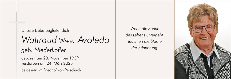 Vergelt’s Gott allen, die sich mit uns von unserer lieben Mutti verabschieden und sie in guter Erinnerung behalten.