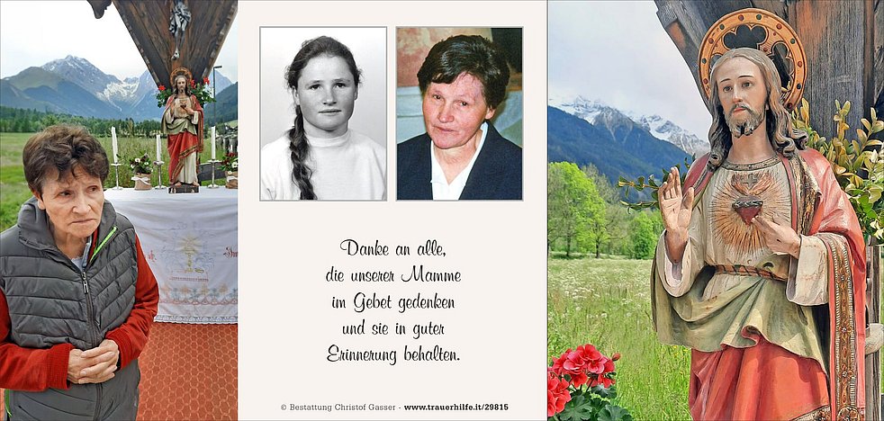 Unsere liebe Mamme ist ab Freitagnachmittag in der Pfarrkirche von Antholz-Niedertal aufgebahrt.