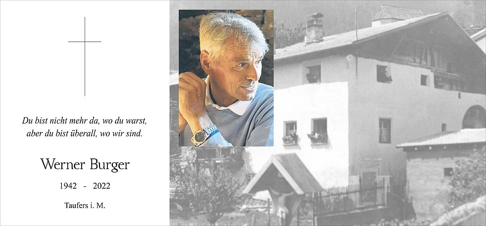 Am Freitag, 2. September, um 13.30 Uhr beten wir den Rosenkranz; um 14 Uhr feiern wir den Begräbnisgottesdienst in der Pfarrkirche von Taufers i.M.