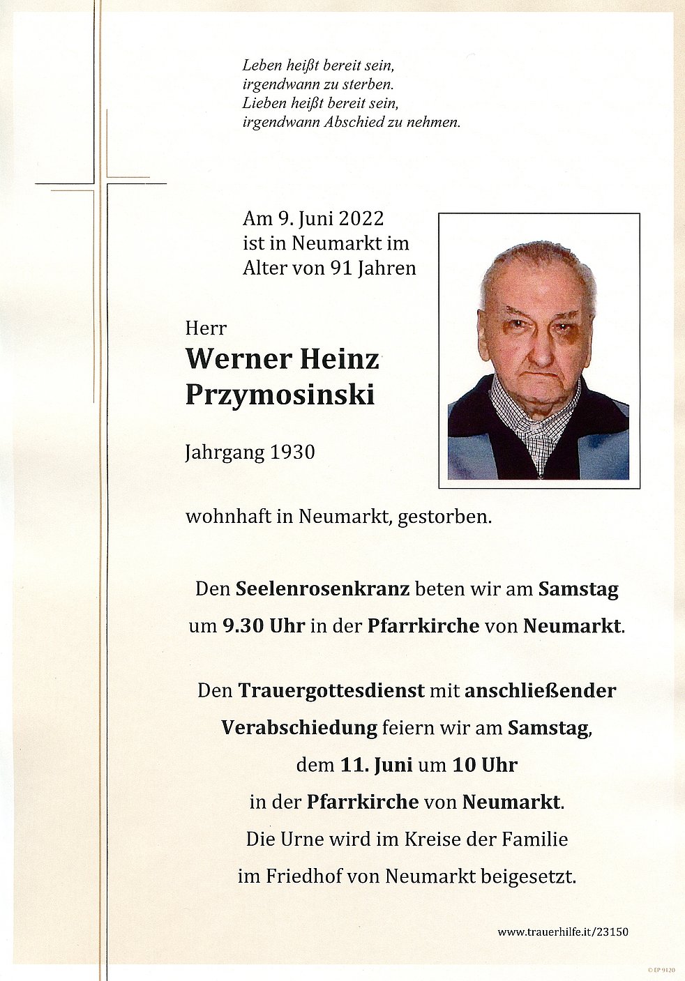 Trauerfeier: 11.06. - 10:00 Uhr Pfarrkirche Neumarkt
