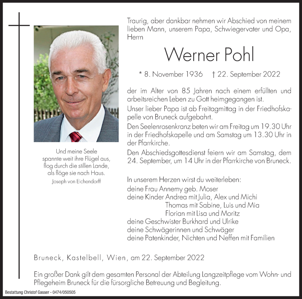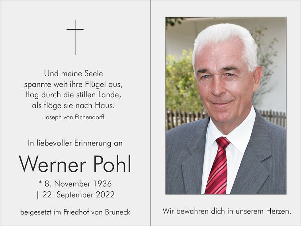 Unser lieber Papa ist ab Freitagmittag in der Friedhofskapelle von Bruneck aufgebahrt.