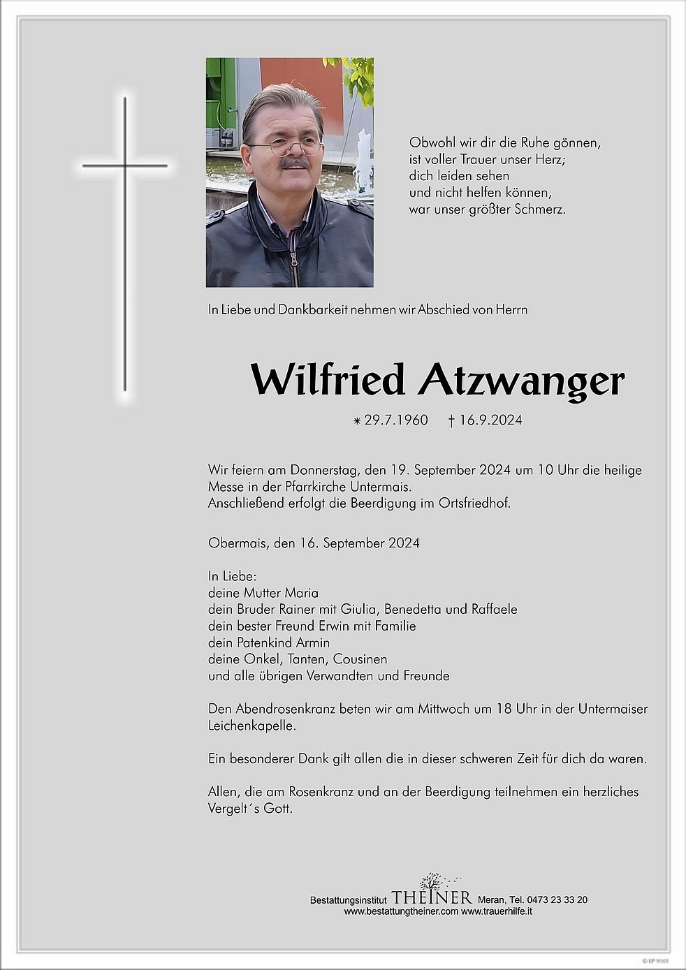 Wir feiern am Donnerstag, den 19. September 2024 um 10 Uhr die heilige Messe in der Pfarrkirche Untermais.