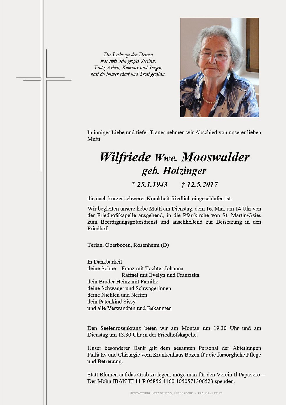 Wilfriede Wwe. Mooswalder geb. Holzinger