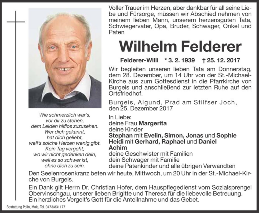 Burgeis, Algund, Prad am Stilfserjoch, den 25. Dezember 2017