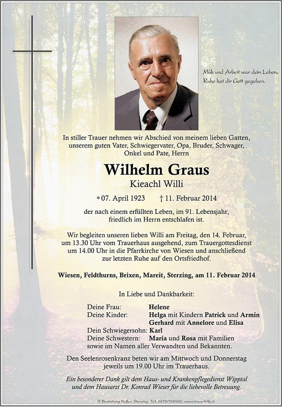 Wir begleiten unseren lieben Willi am Freitag, den 14. Februar, um 13.30 Uhr