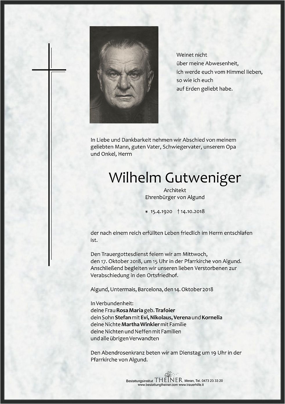 Den Trauergottesdienst feiern wir am Mittwoch, den 17. Oktober 2018, um 15 Uhr in der Pfarrkirche von Algund. Anschließend begleiten wir unseren lieben Verstorbenen zur Verabschiedung in den Ortsfriedhof.