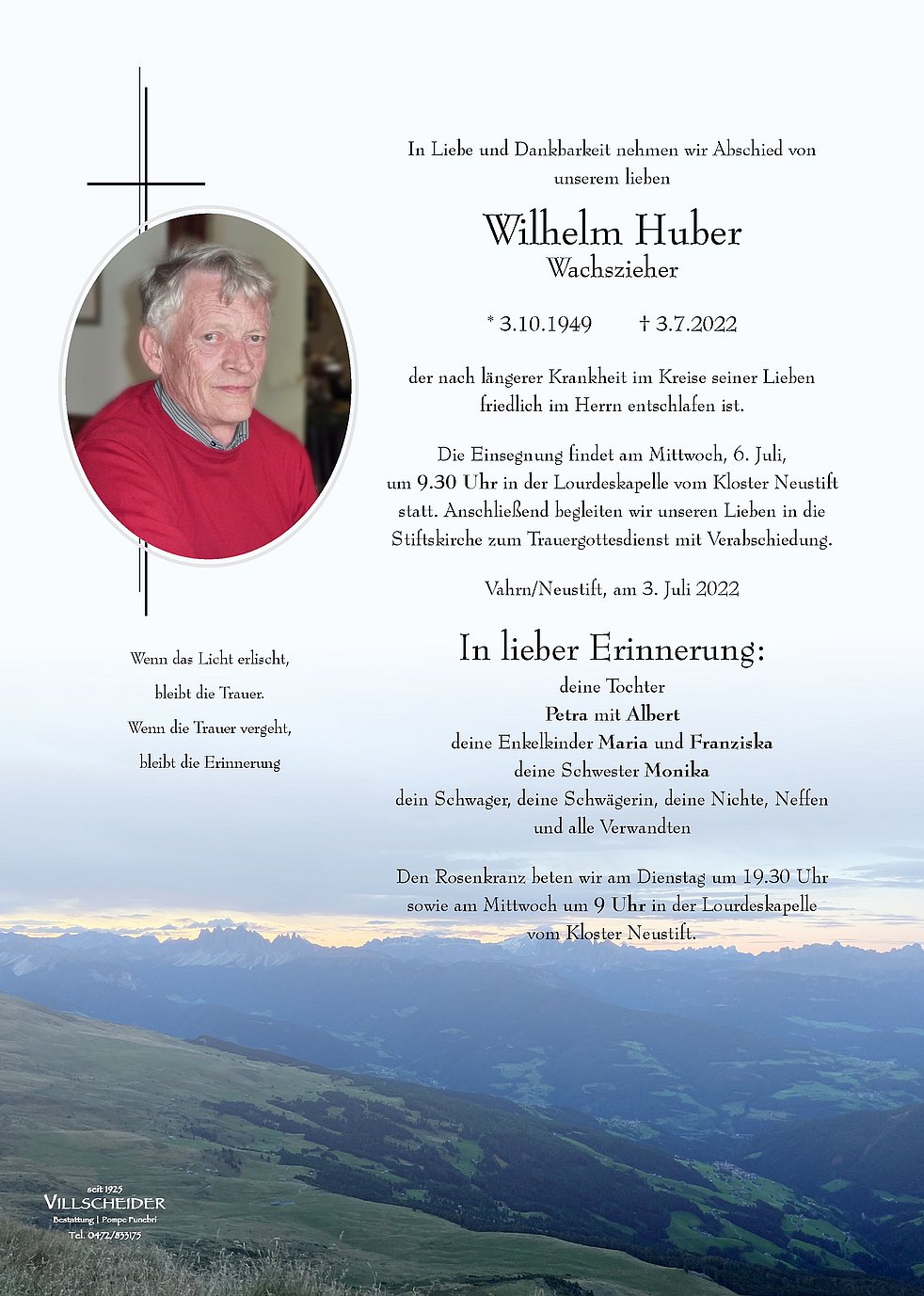 Wir nehmen aufrichtig Anteil am Schmerz, den unsere Mitarbeiterin Frau Petra Huber durch den Tod ihres geliebten Vaters, Herrn Wilhelm Huber erlitten hat, und drücken Ihr und Ihrer Familie unser tiefstes Mitgefühl aus.