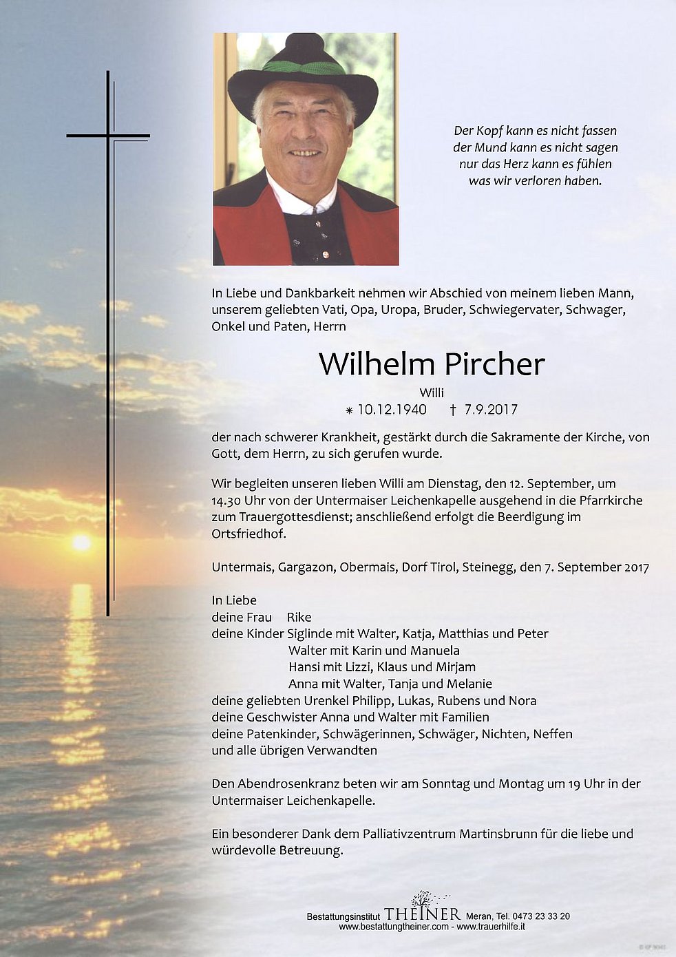 Wir begleiten unseren lieben Willi am Dienstag, den 12. September, um 14.30 Uhr von der Untermaiser Leichenkapelle ausgehend in die Pfarrkirche zum Trauergottesdienst; anschließend erfolgt die Beerdigung im Ortsfriedhof.