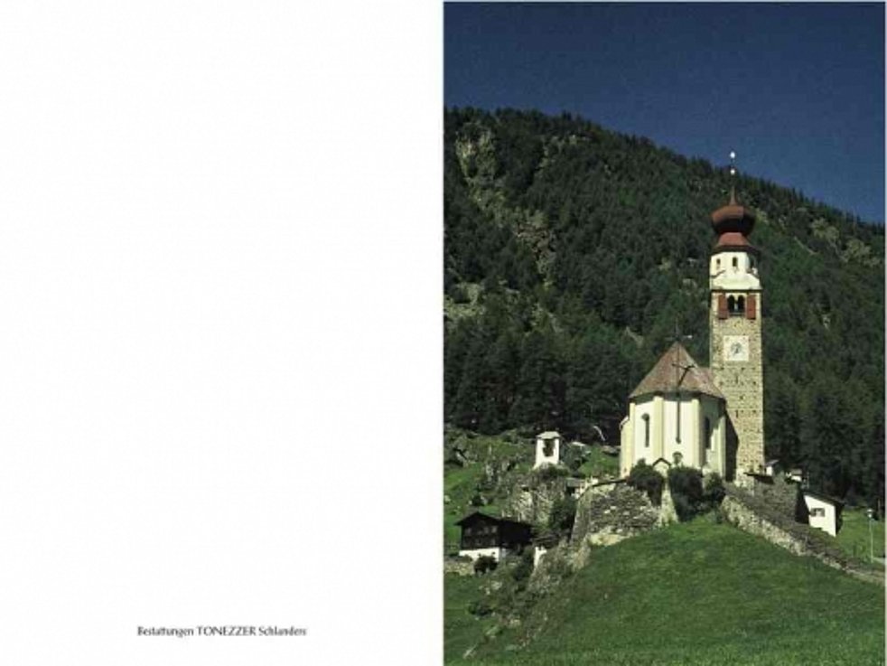 Wir begleiten unseren lieben Verstorbenen am Donnerstag, 25. November, um 14.30 Uhr von der Totenrast aus zum Begräbnisgottesdienst in die Wallfahrtskirche von Unser Frau/Schnals und anschließend zur Beerdigung auf den Ortsfriedhof.