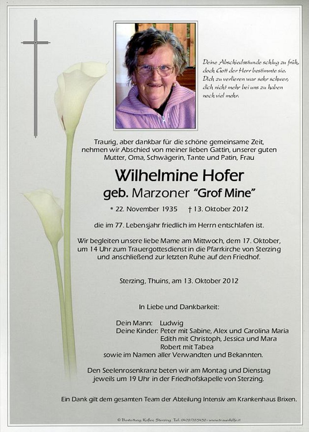 Wir begleiten unsere liebe Mame am Mittwoch, dem 17. Oktober,