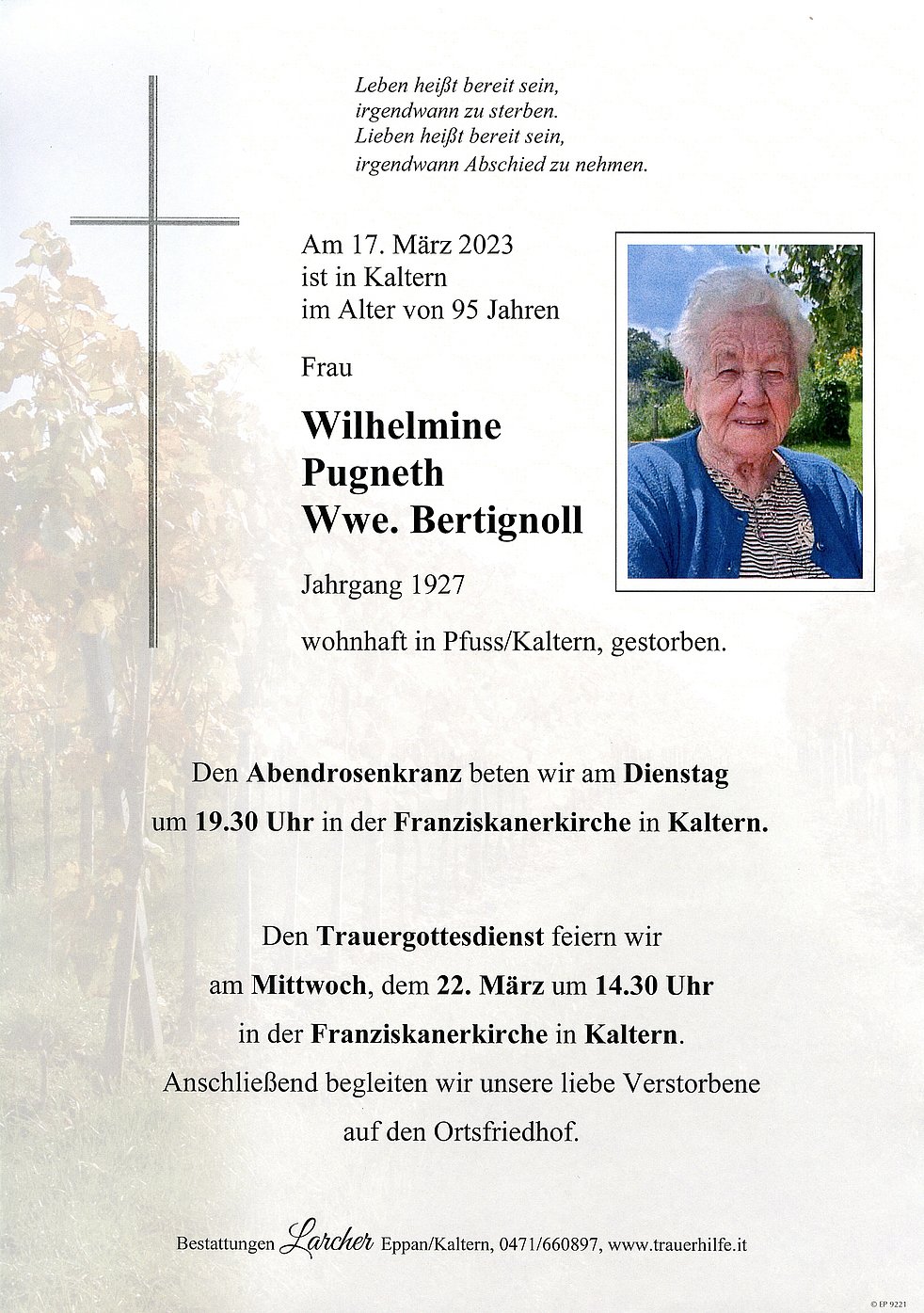 Begräbnisgottesdienst: 22.03. - 14:30 Uhr Franziskanerkirche in Kaltern