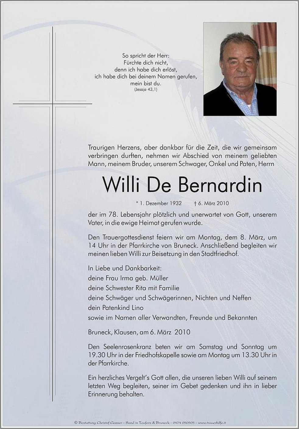 14 Uhr in der Pfarrkirche von Bruneck. Anschließend begleiten wir meinen lieben Willi zur Beisetzung in den Stadtfriedhof.