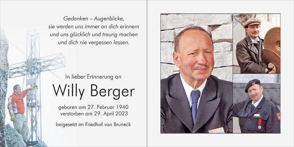 Unser lieber Willy ist ab Mittwoch zur persönlichen Verabschiedung in der Friedhofskapelle von Bruneck aufgebahrt.