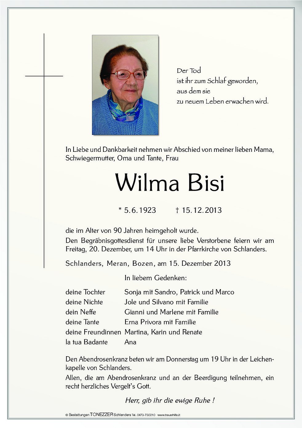 Den Begräbnisgottesdienst für unsere liebe Verstorbene feiern wir am Freitag, 20. Dezember, um 14 Uhr in der Pfarrkirche von Schlanders.